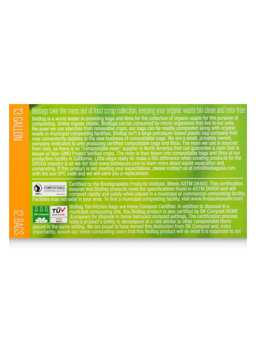 Sized for your kitchen can, these liners are great for collecting all your curbside-bound compostable materials. Or, if you’d like to reduce the amount of plastic heading to the landfill, use in place of your regular trash bags!
