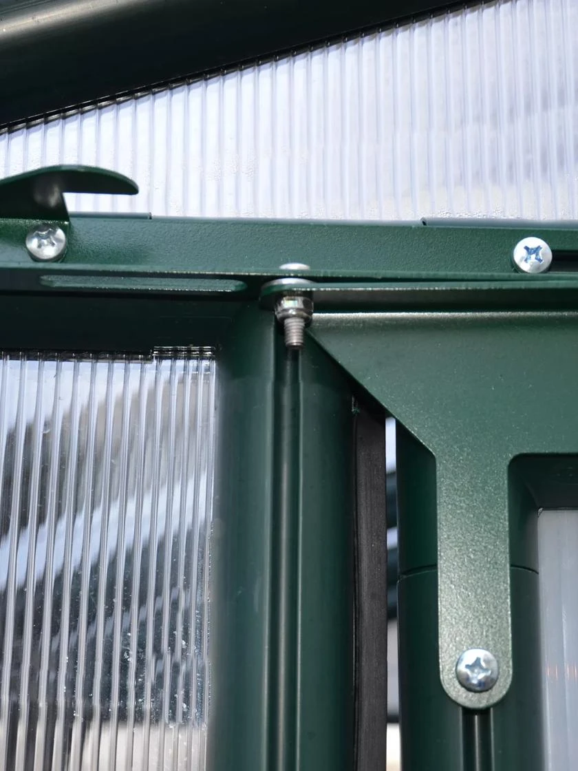 This greenhouse is tops in its class – attractive, durable and easy to assemble. The sturdy frame is constructed from UV-protected resin and held together with push-n-fit resin connectors. The virtually unbreakable twin-wall polycarbonate panels offer superior strength, safety, light diffusion and heat insulation. All these features plus an easy, no-tool assembly makes it perfect for the growing enthusiast’s needs.
