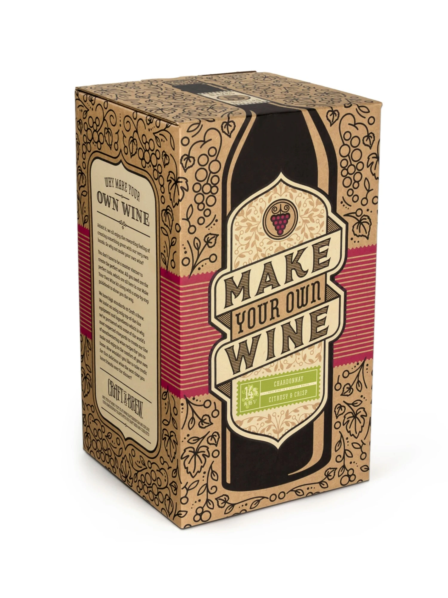 This Australian Chardonnay is supple and lingers on the palate with layers of toast and spice. It elicits a soft mouthfeel and balanced acidity; vanilla oak and spice notes, citrus and tropical fruit flavors leading to a medium-long, balanced finish. This wine kit comes with everything you need to make 1 gallon (which will result in approx. five 750ml bottles) of finished wine.