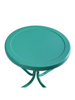 Relax and rock away with the retro-inspired Griffith 3pc Rocking Chair Set. Made from sturdy powder-coated steel, the rocking chair and side table are constructed with durability and style in mind. The low slanted seat of the rocking chair allows you to recline on smooth metal rockers while the curved armrests maximize comfort. The round side table complements the rocking chair with the perfect spot to place your drink. Available in a variety of vibrant colors, this set will create a lively spot for outdoor relaxation.
