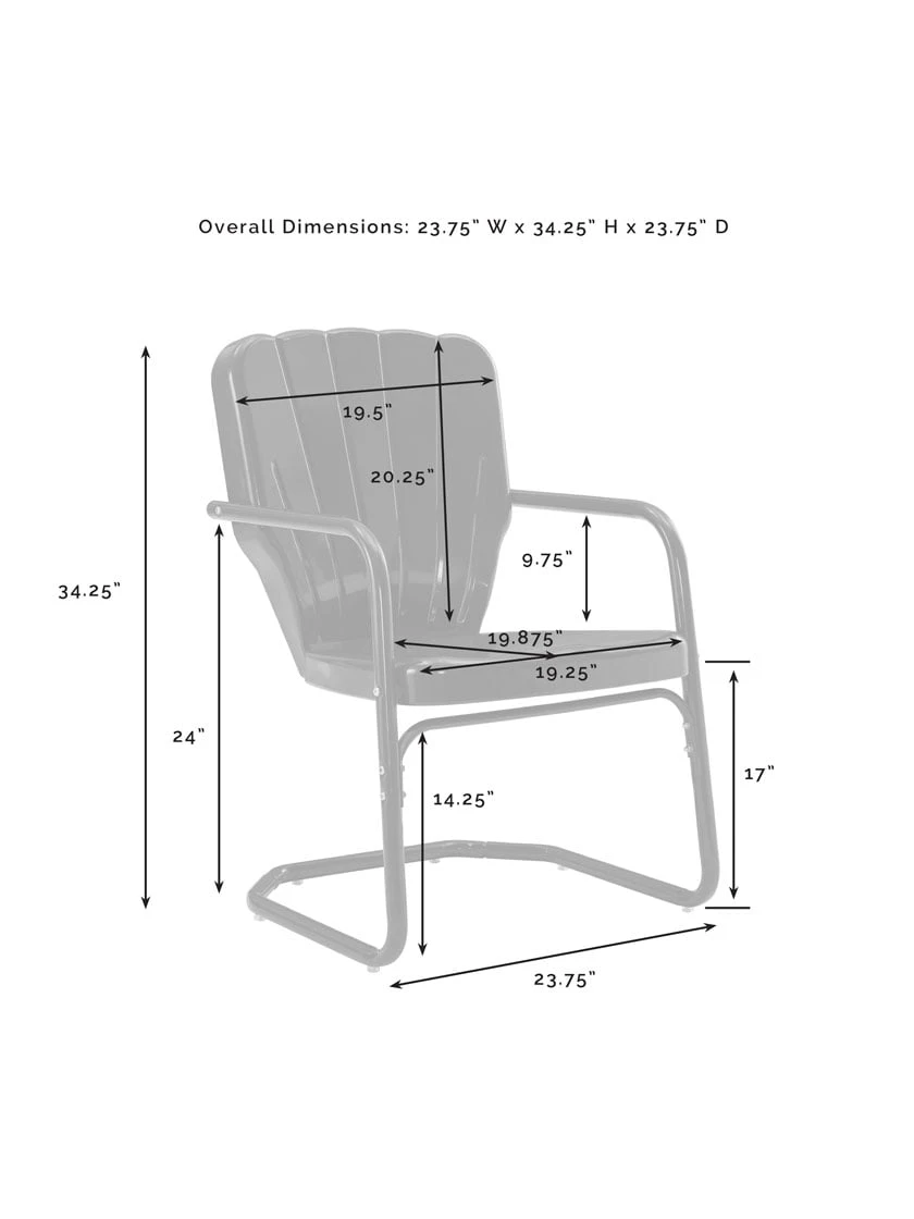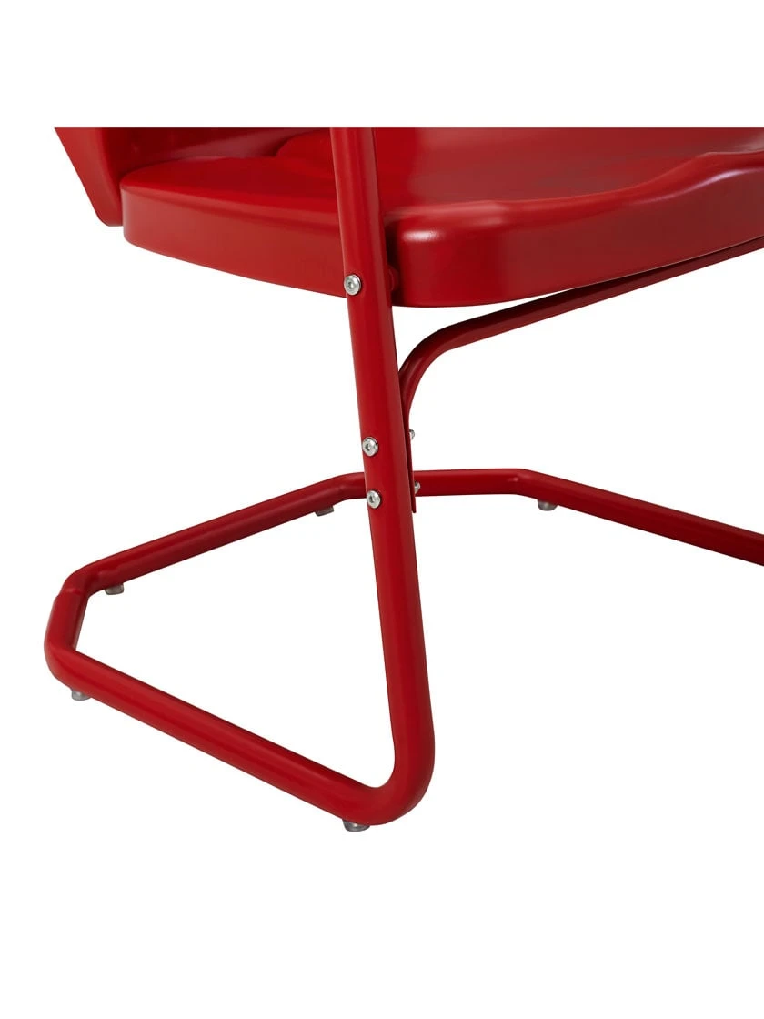 Inspired by the designs of yesteryear, the Ridgeland 3pc Bistro Set brings class and charm to your outdoor space. Two vintage-style chairs in vibrant colors surround a simple metal bistro table for a fun and functional outdoor lounging experience. Each chair features a clamshell back with decorative grooves, plus a cantilever base that provides just enough flex for lounging in comfort. The table’s sturdy pedestal base is comprised of four metal legs and easily tucks between the chairs, making the Ridgeland 3pc Bistro Set ideal for a small balcony or patio.