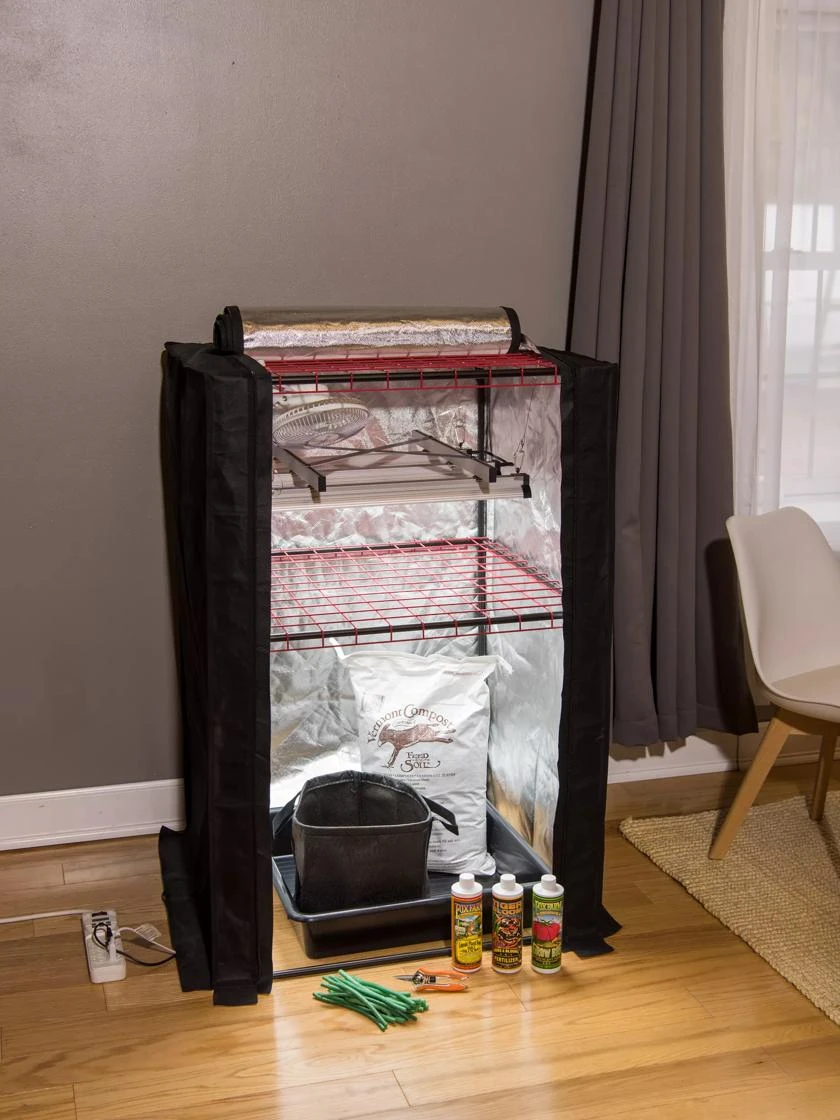 - Includes frame, LED lights, blackout cover, grow bag, potting mix, fertilizers, waterproof tray, ergonomic snips, timer, ties, and fan