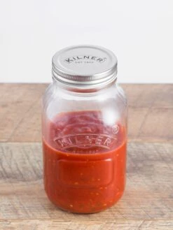- Jar is 3-1/2″ in diameter x 7″ H overall, holds 34 oz.