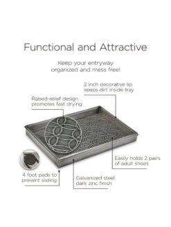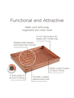 This multi-purpose boot tray is as versatile as it is attractive! Our customers use it for shoes in the entryway or mudroom to keep floors clean; as an attractive home for potted plants; or as a neat, no-mess zone for pet bowls. Pads on bottom prevent sliding.