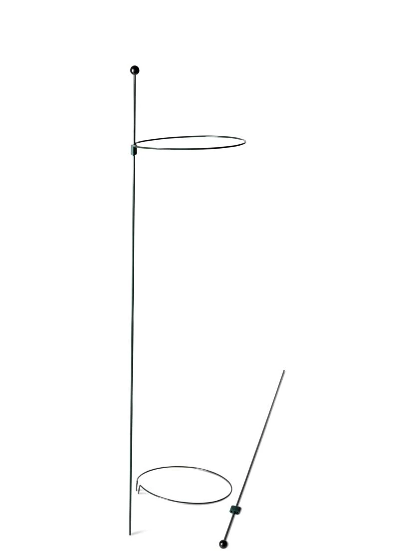 Designed to last a lifetime, these superior plant rings are simple, attractive, and ultra versatile. The unique system allows rings to slide easily up the stake to keep pace with your plant as it grows โ and yet won’t slip down under bloom weight. Galvanized steel has a protective vinyl coat that’s gentle on stems. And a glossy finial atop the stake keeps human eyes safe from inadvertent pokes.